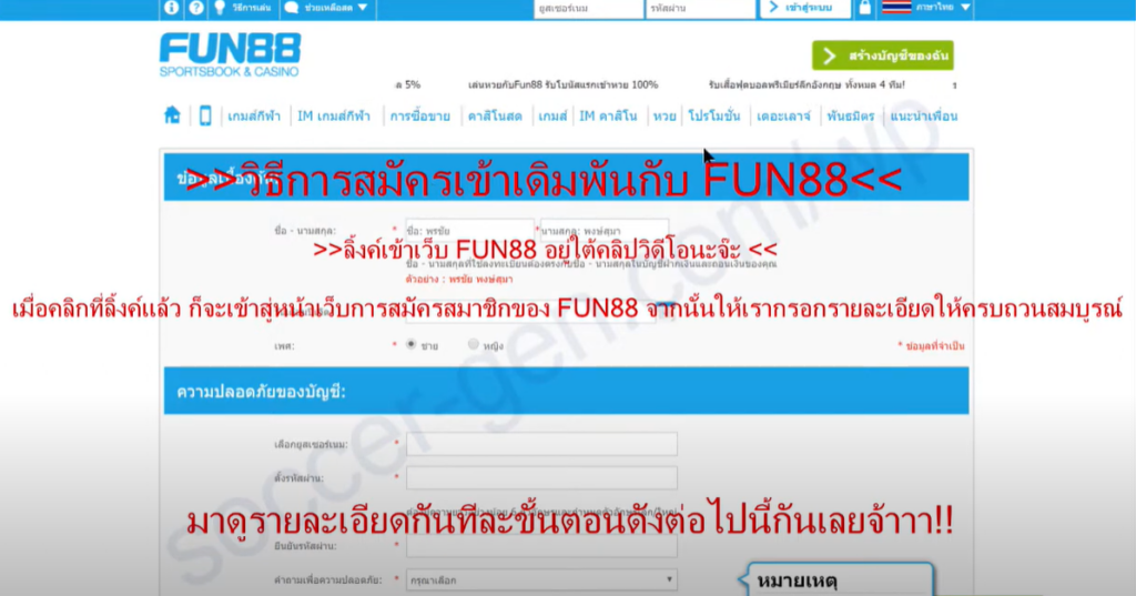 โปรดทราบว่าคุณต้องใส่มันไว้ในกระเป๋าเมื่อลงทะเบียนกับ Fun88 - funthai88vip.com