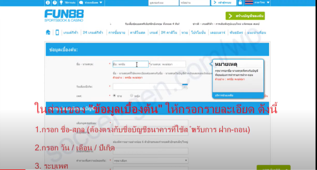 ขั้นตอนที่ 2: เตรียมข้อมูลการลงทะเบียน Fun88